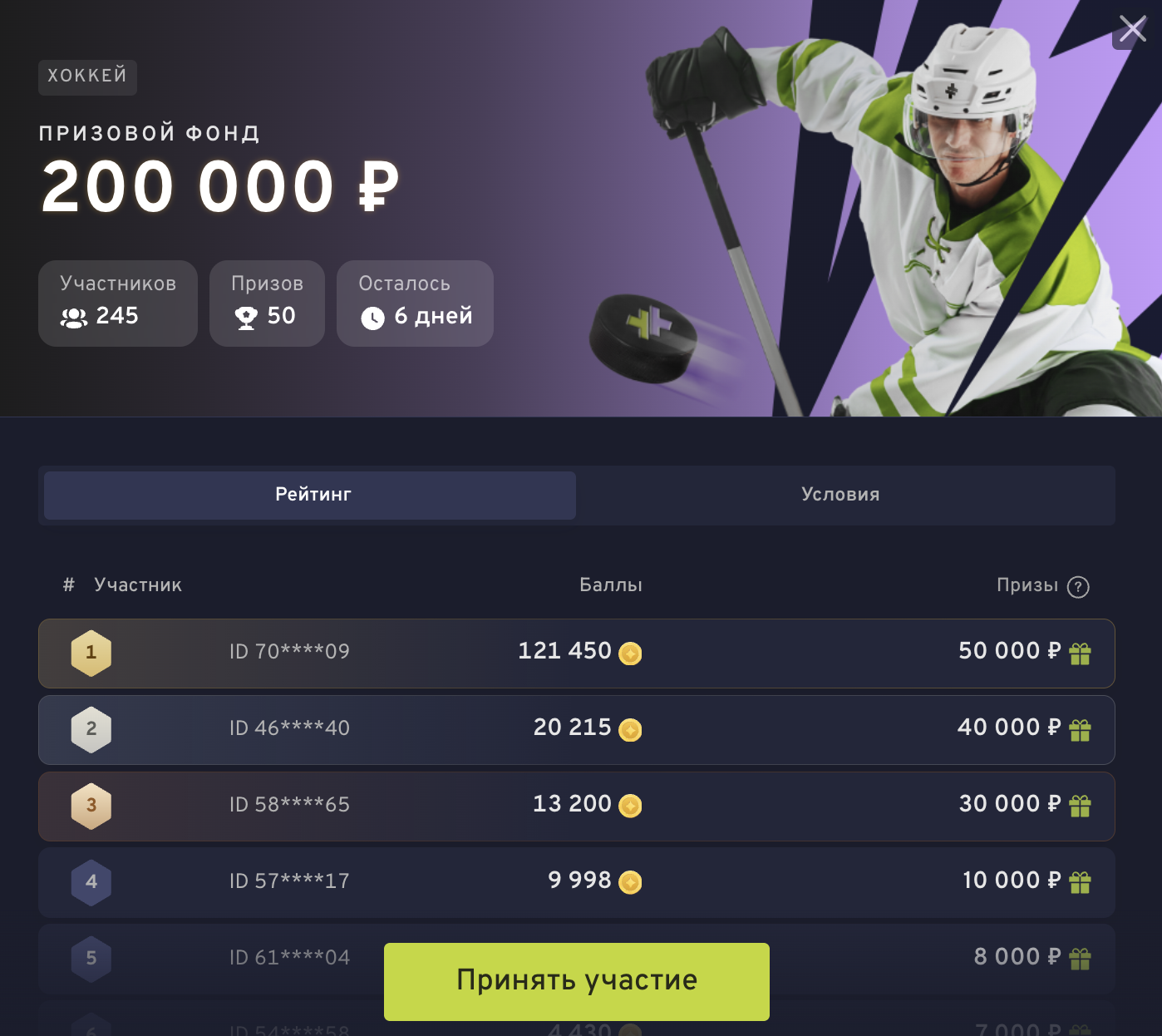 Акция только для хоккея — если вы не интересуетесь этим видом спорта, участвовать не имеет смысла