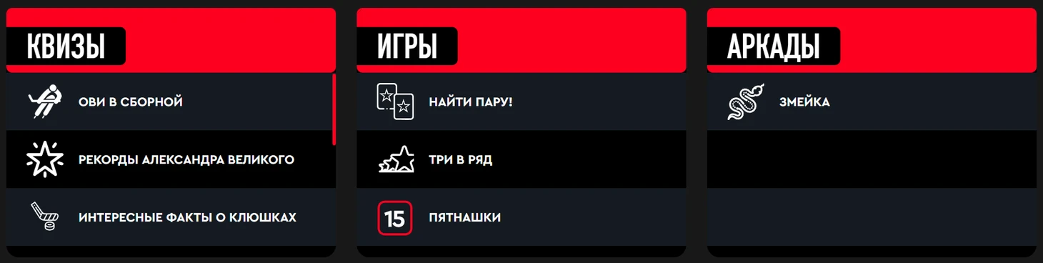 - «Тренируйся как Ови!» (видеоквиз) — смотрите видео с подсказками, отвечайте на вопросы и делайте ставки от 500 ₽ с кэфом от 1.80. Трое самых быстрых и точных участников получат поездку в Москву на тренировку с тренером Овечкина