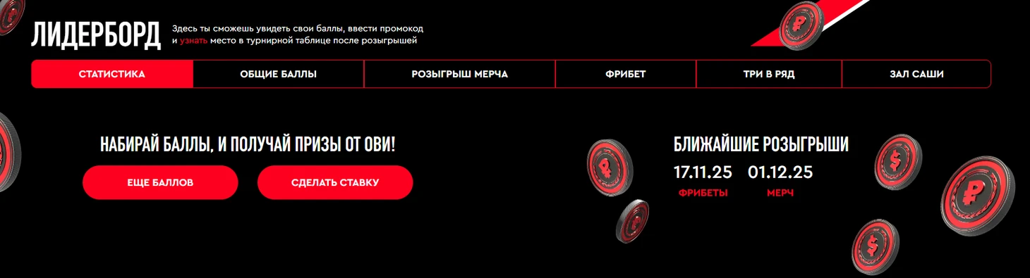 - «Новые рекорды» (ежемесячно с 07.10.2025) — угадайте, какой рекорд Овечкин установит в следующем месяце, и получите 1 000 баллов